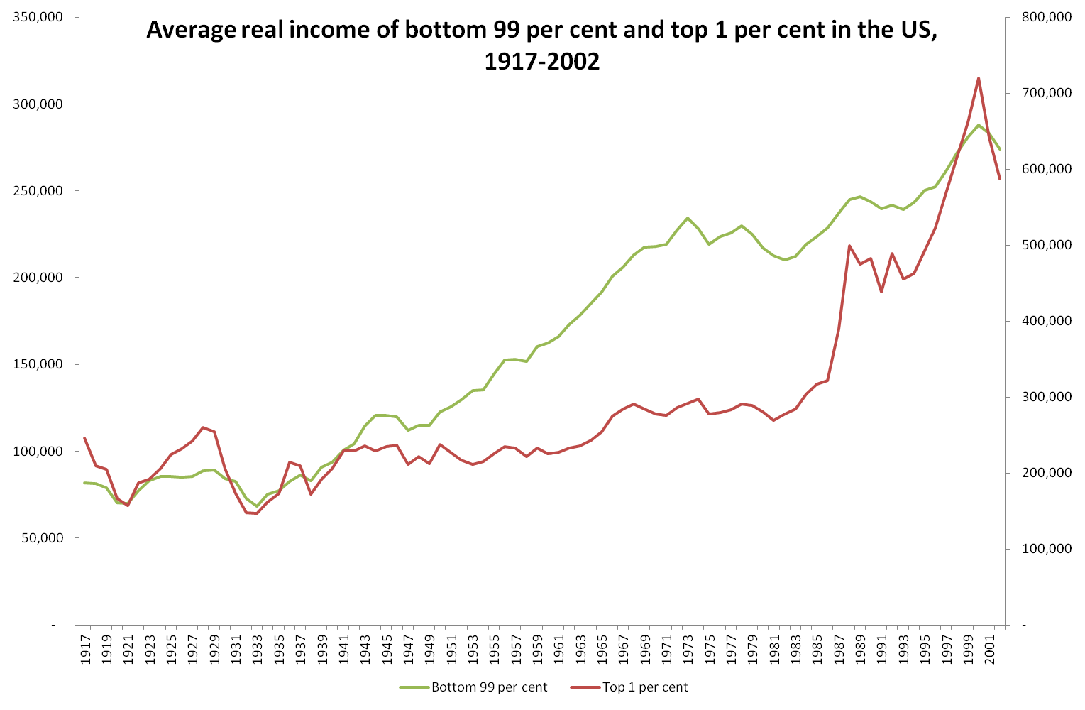 The OECD, as noted, expects the global economy to stagnate, whilst inequality rises by 40 per cent. By 2060 Sweden will have the level of inequality of the US today. However, in a sense these predictions are wildly optimistic, because the OECD attribute three quarters of the growth over this period to a “rapid rise in productivity due to information technology”.(p28) The report acknowledges that this is “high compared with recent history”. If the network benefits of new technology remain stubbornly resistant to capture by capitalism, the next fifty years could be substantially worse. The OECD's dire predictions also require developed countries to take 130 million migrants to address their ageing population, further diminish labour rights, and fully privatise higher education.
